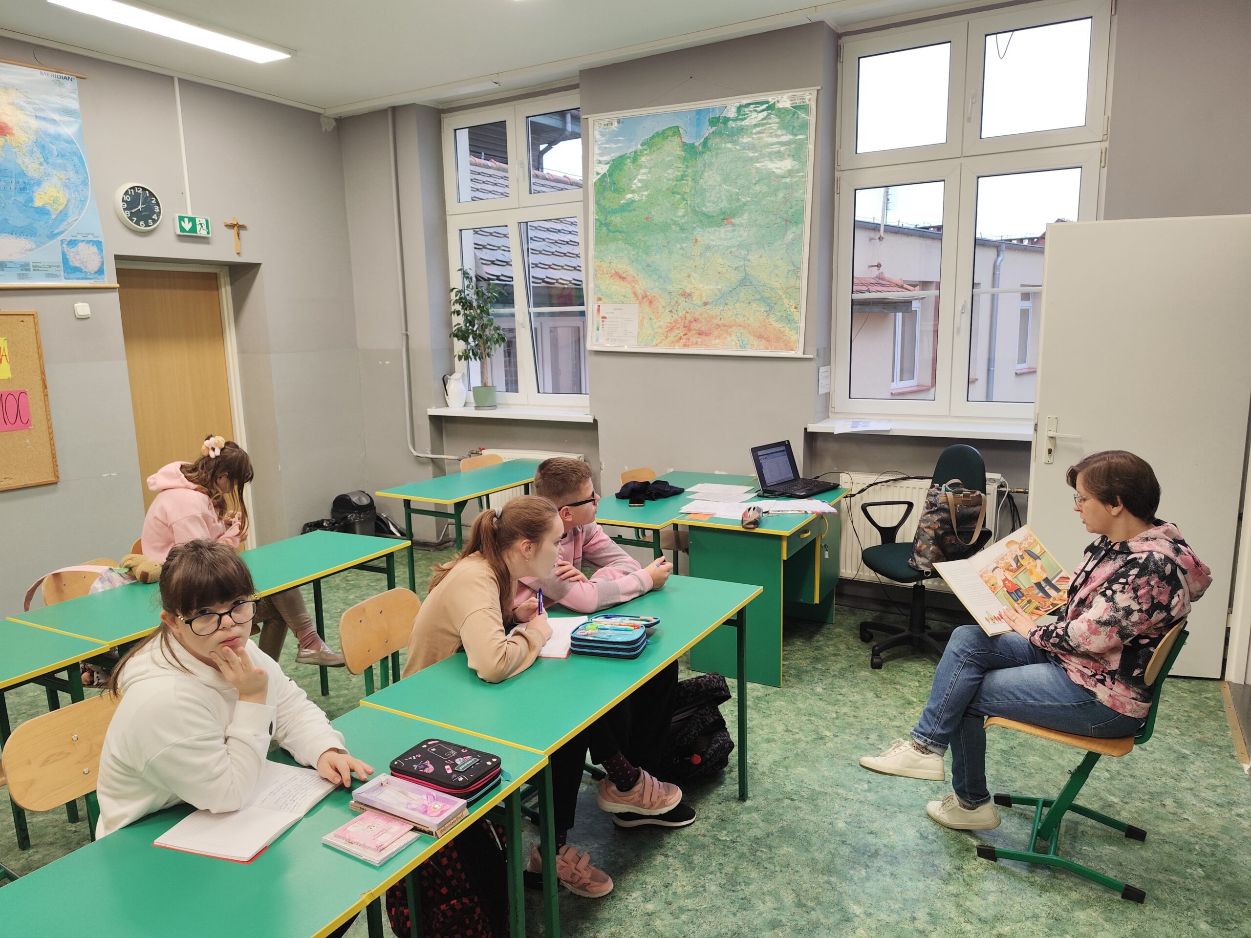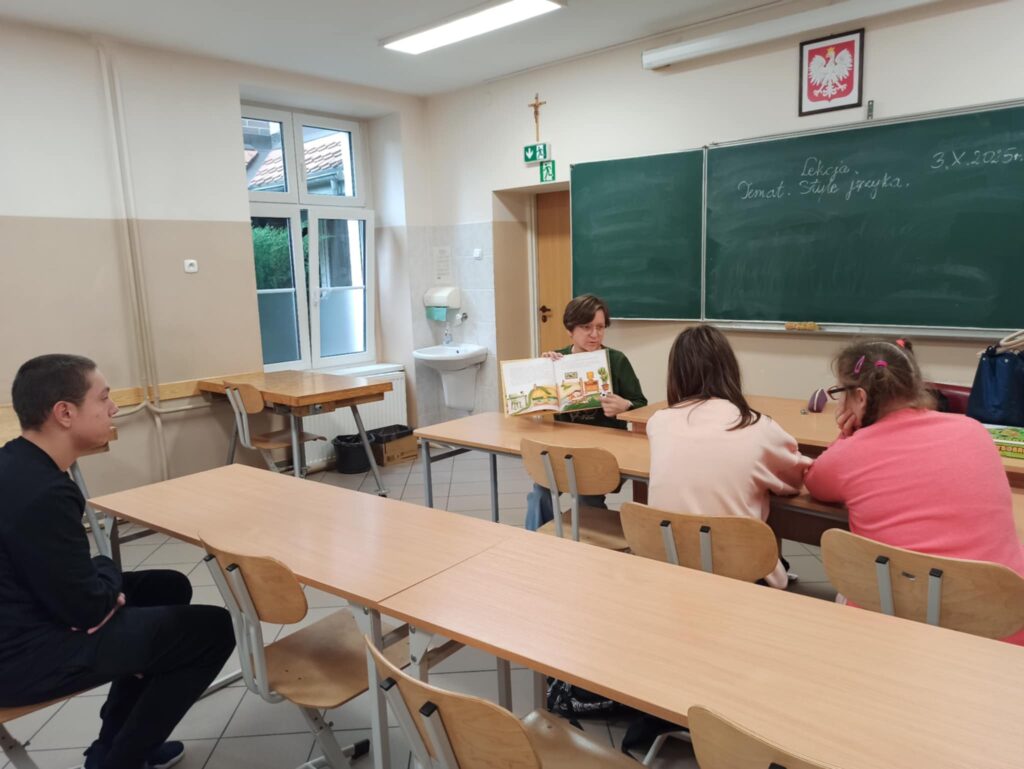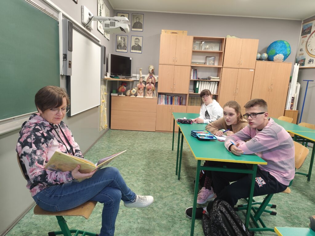 W klasach czytała uczniom książkę „Moja krew ma moc”.
