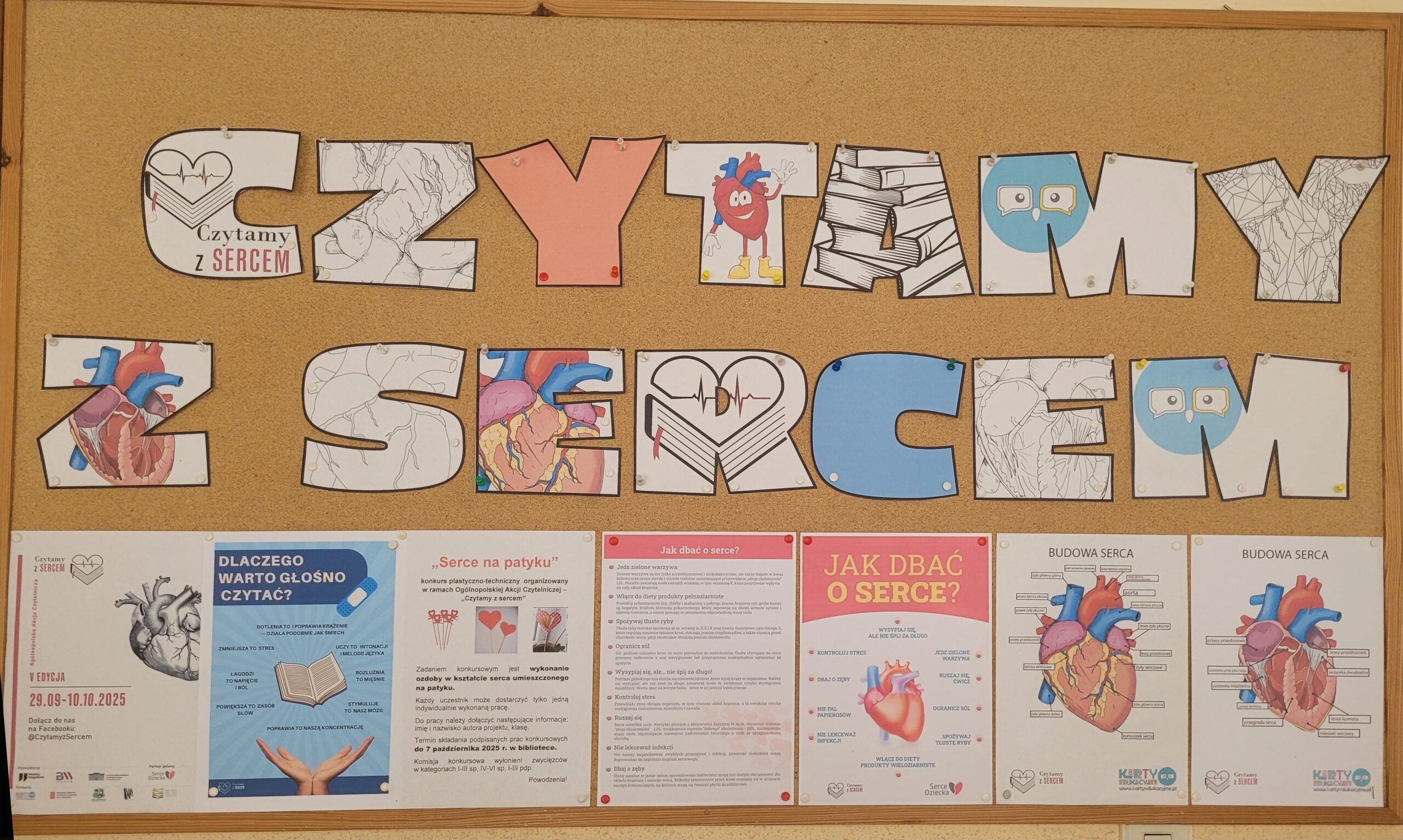 Na górnym korytarzu powstała gazetka informacyjna o zaletach głośnego czytania, budowie serca i zasadach dbania o nie.