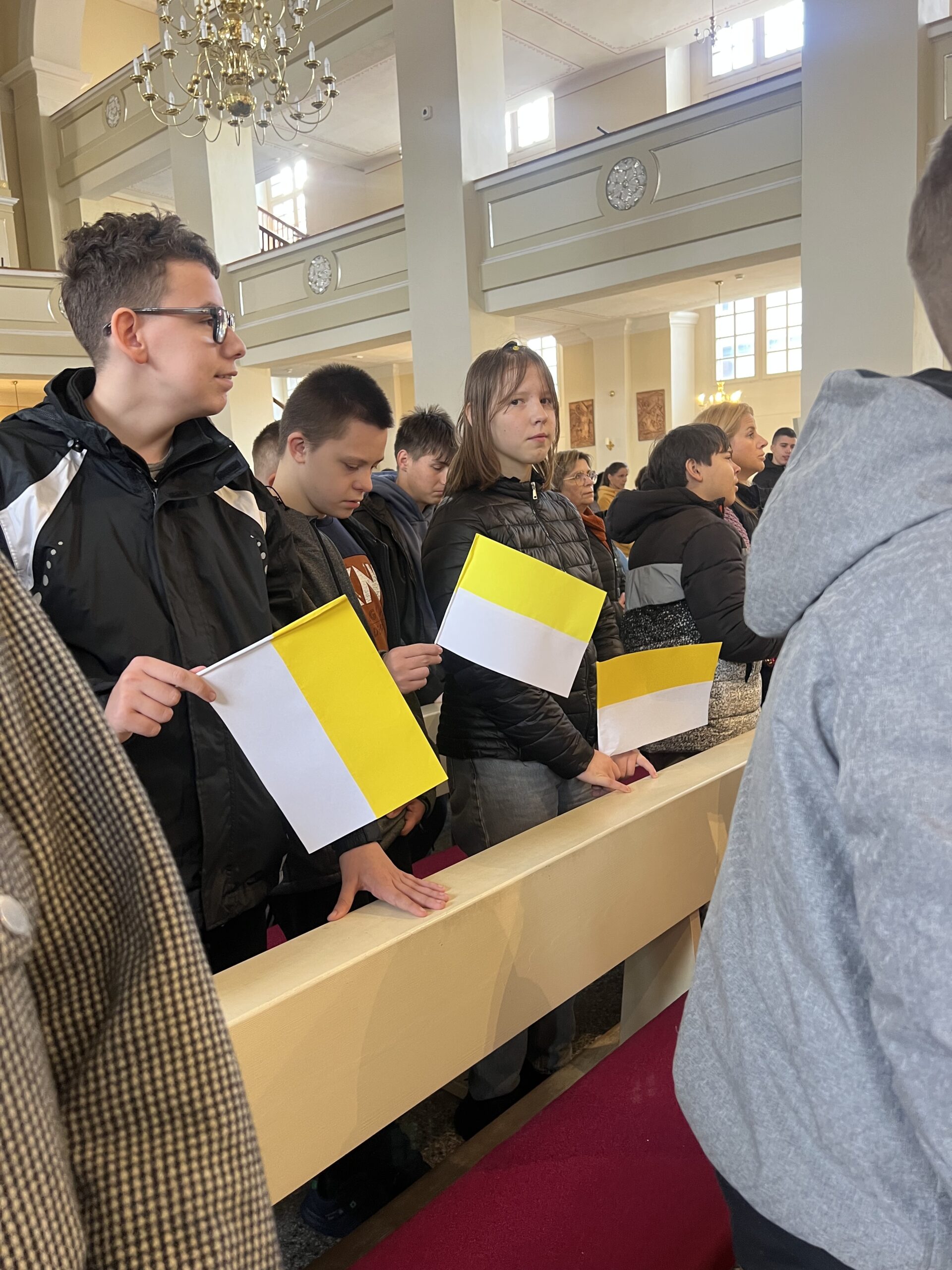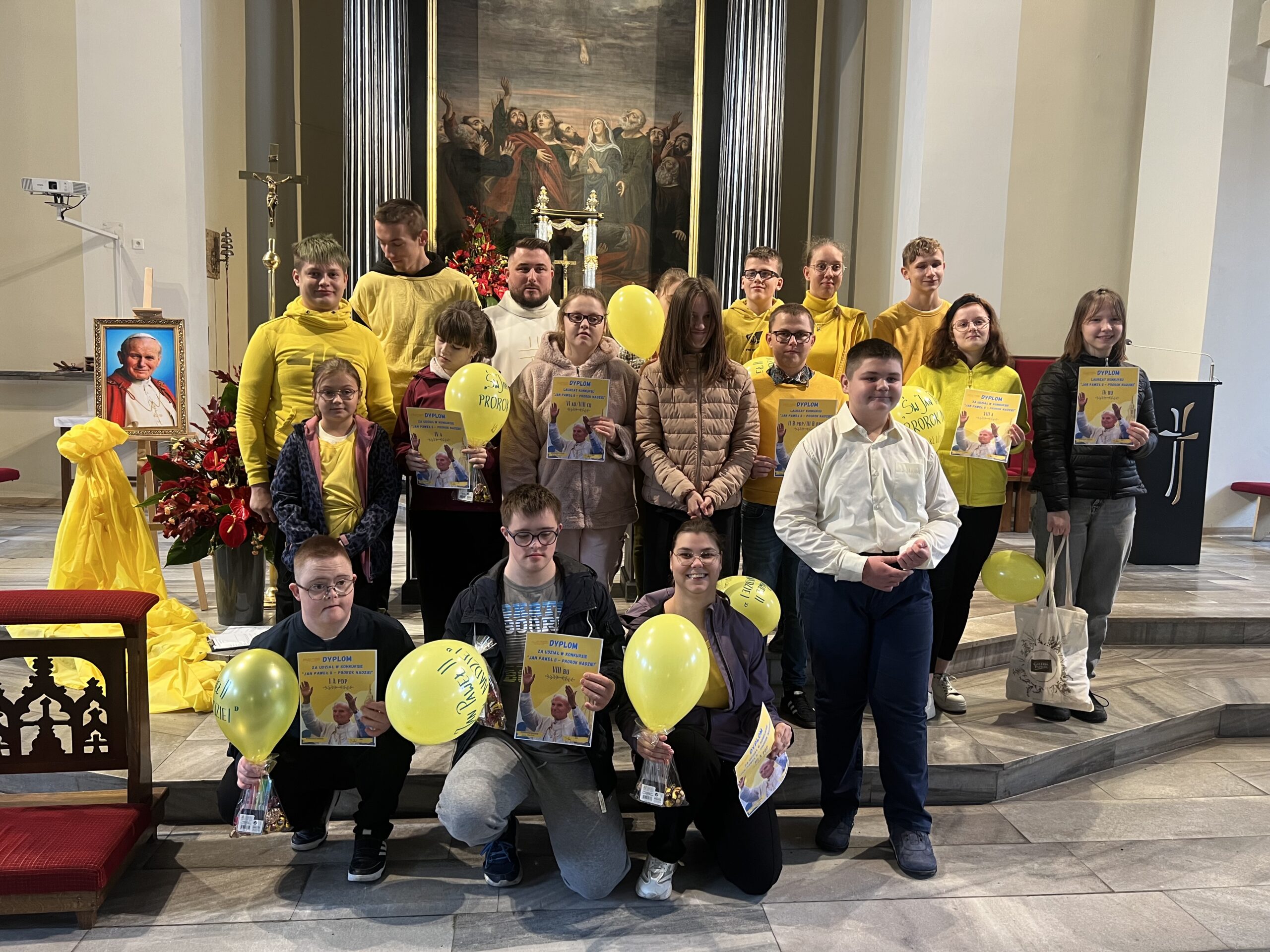 Serdecznie dziękuję za wsparcie Radzie Rodziców przy ZSS w Wolsztynie, firmie Dino Polska oraz hurtowni Vika w Wolsztynie za pomoc finansową i rzeczową, dzięki której możliwe było przygotowanie nagród i upominków dla uczniów. Dziękuję również Księdzu Marcinowi za sprawowaną Eucharystię i wychowawcom, którzy podjęli trud przygotowania swoich klasy do udziału w obchodach. Szczególne słowa uznania kieruję do uczniów, którzy z ogromnym zaangażowaniem recytowali, śpiewali oraz przenieśli flagi papieskie do kościoła, a podczas mszy św. radośnie nimi machali. by w ten sposób uczcić pamięć o naszym wielkim Rodaku i przybliżyć innym przesłanie nadziei, które głosił św. Jan Paweł II.