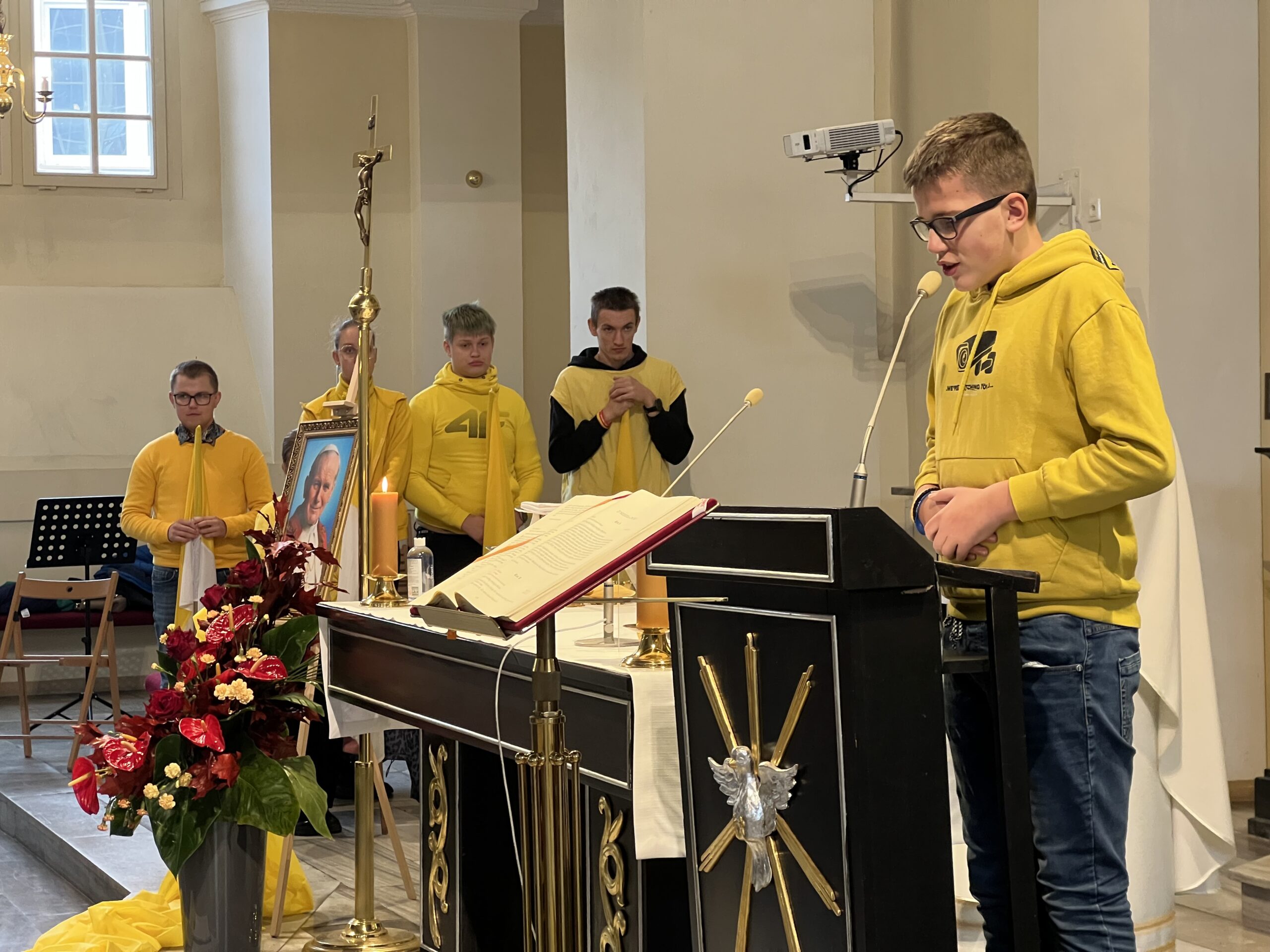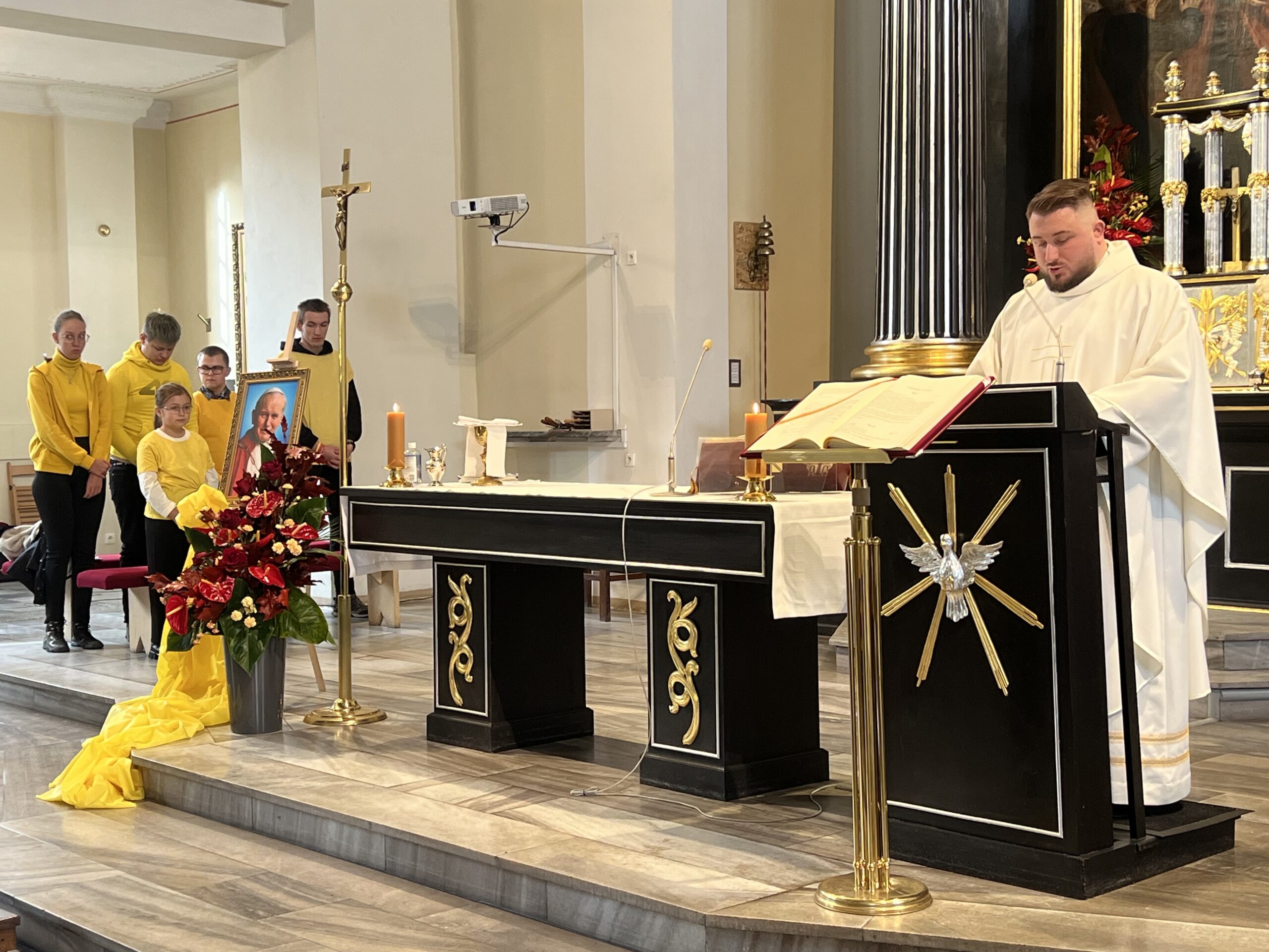W ramach obchodów została odprawiona msza święta, w której aktywny udział wzięli uczniowie naszej szkoły – poprzez czytania, modlitwę powszechną, niesienie darów oraz montaż słowno – muzyczny poświęcony osobie św. Jana Pawła II i jego przesłaniu o nadziei.