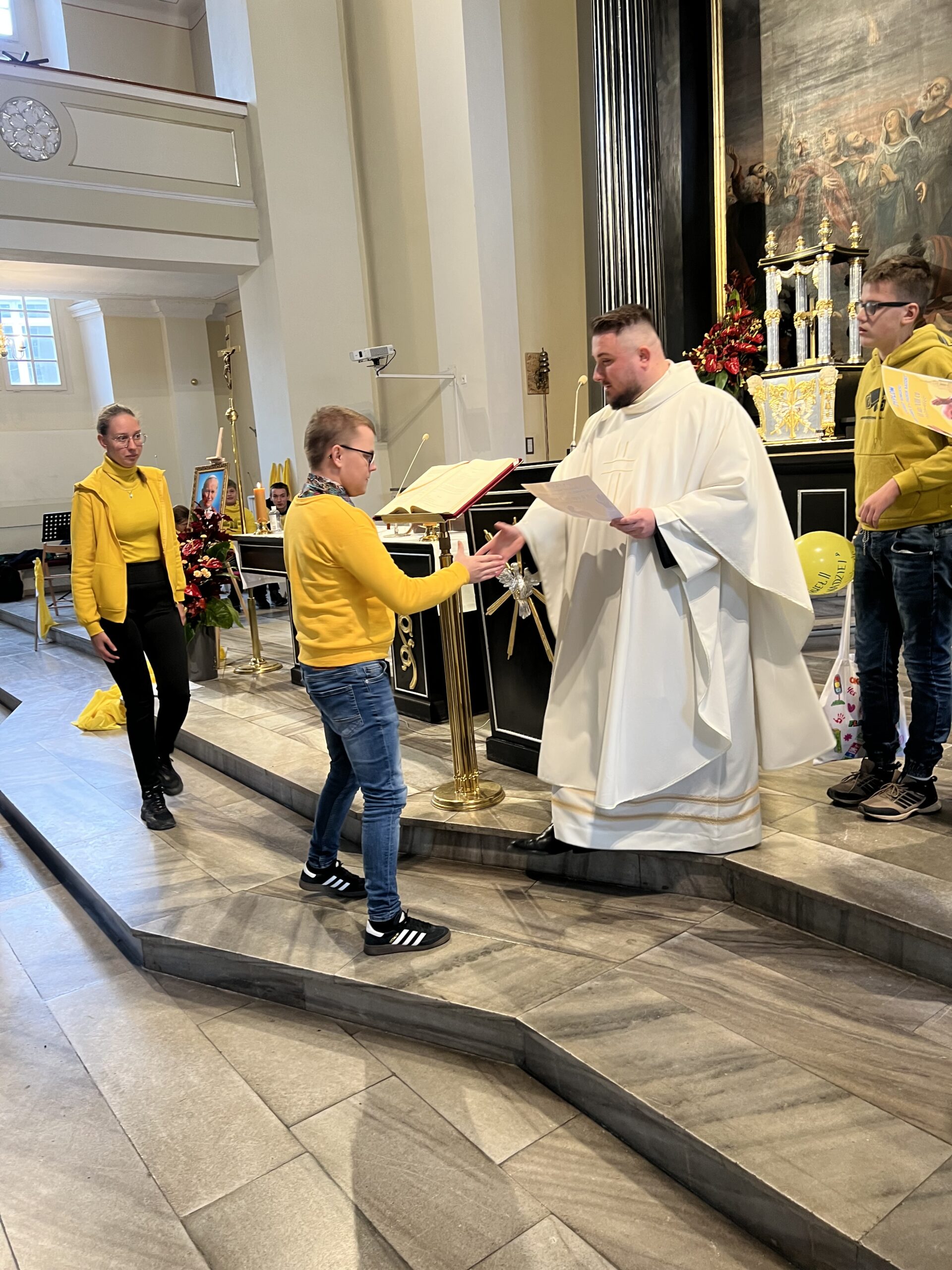 Pozostałe klasy otrzymały pamiątkowe dyplomy i drobne upominki za udział w konkursie. Wszystkie nagrody i wyróżnienia wręczył ks. Marcin – wikary parafii, a na zakończenie schodów wykonaliśmy pamiątkowe zdjęcie wszystkich uczestników.
