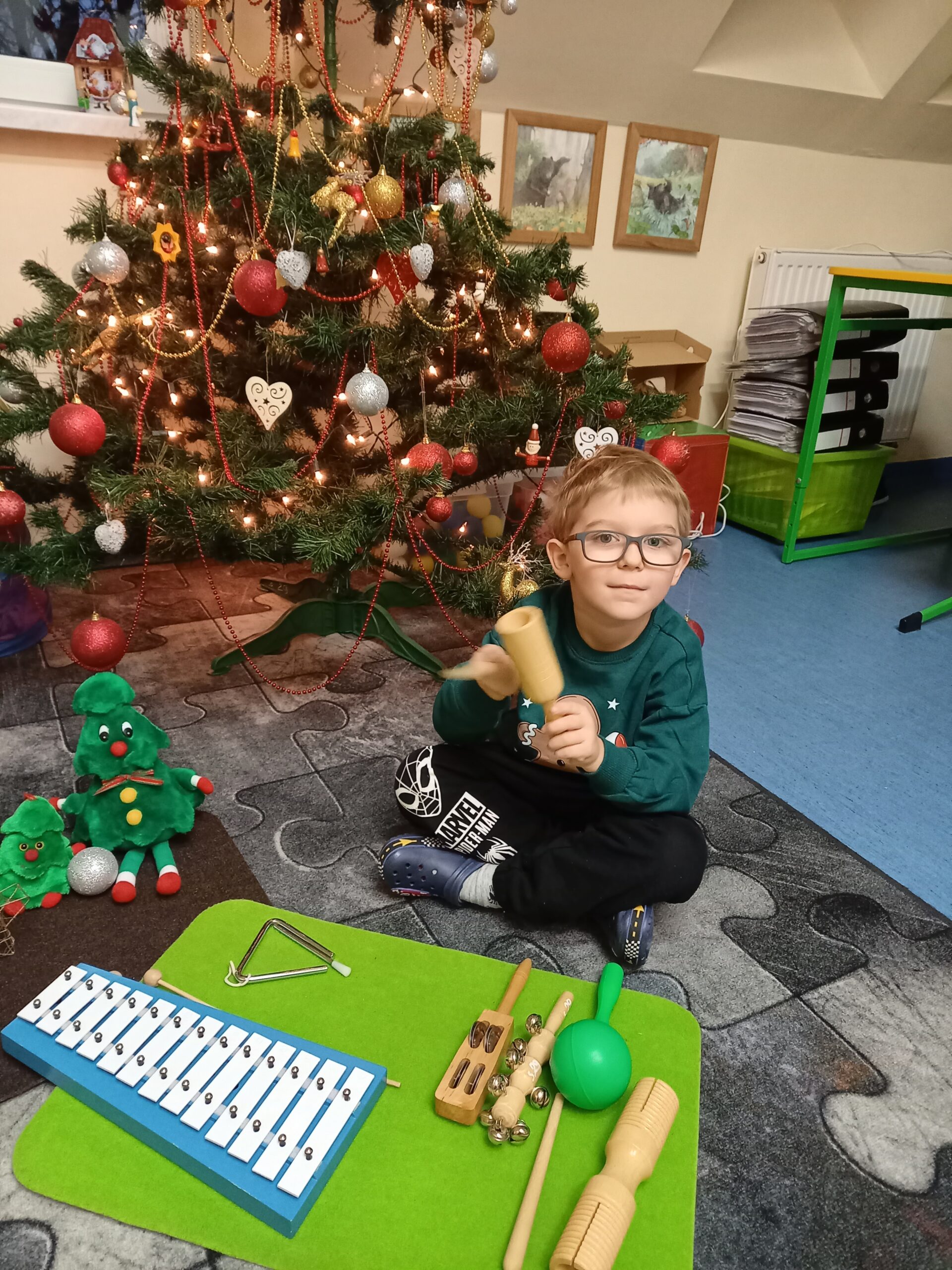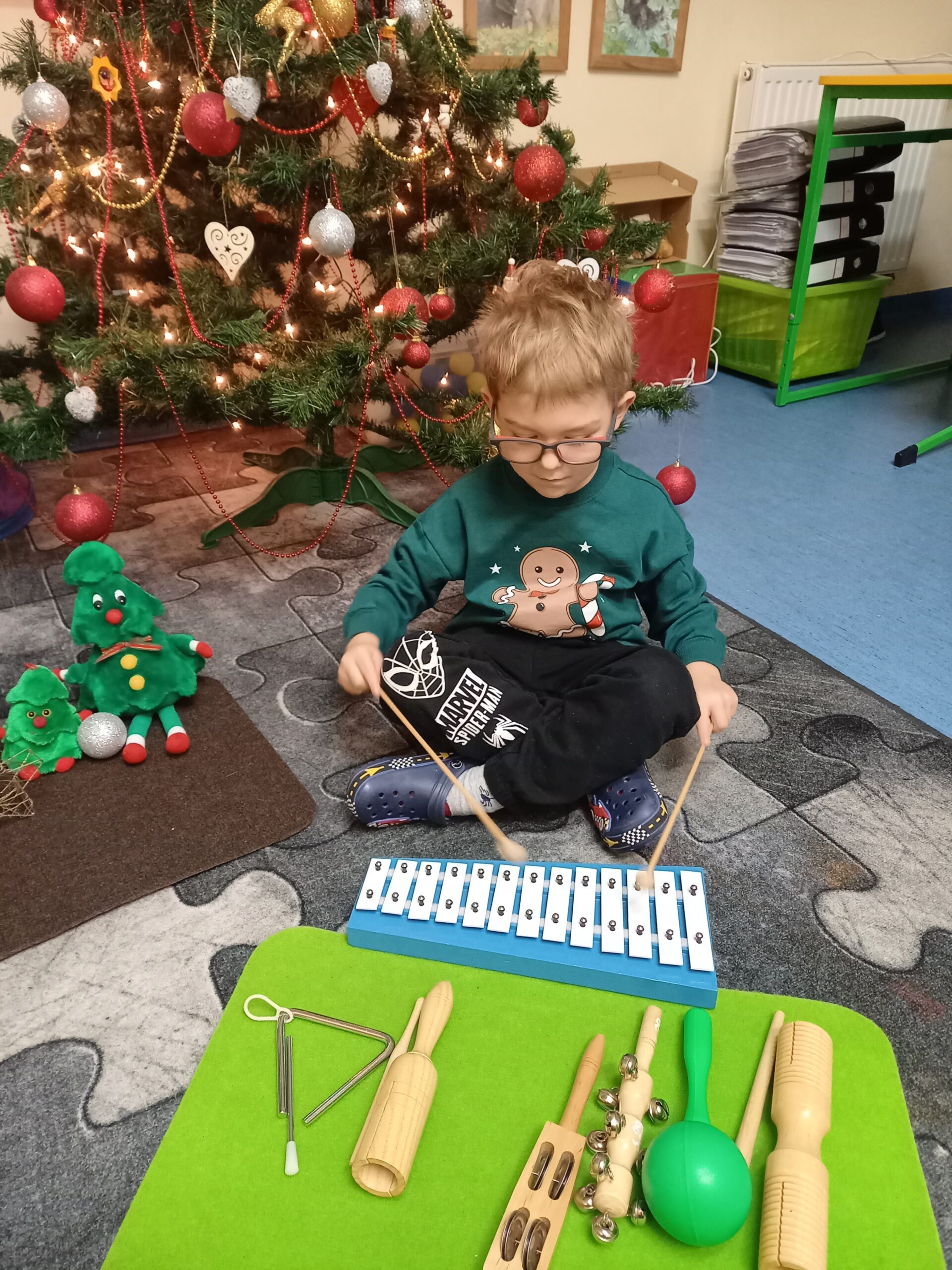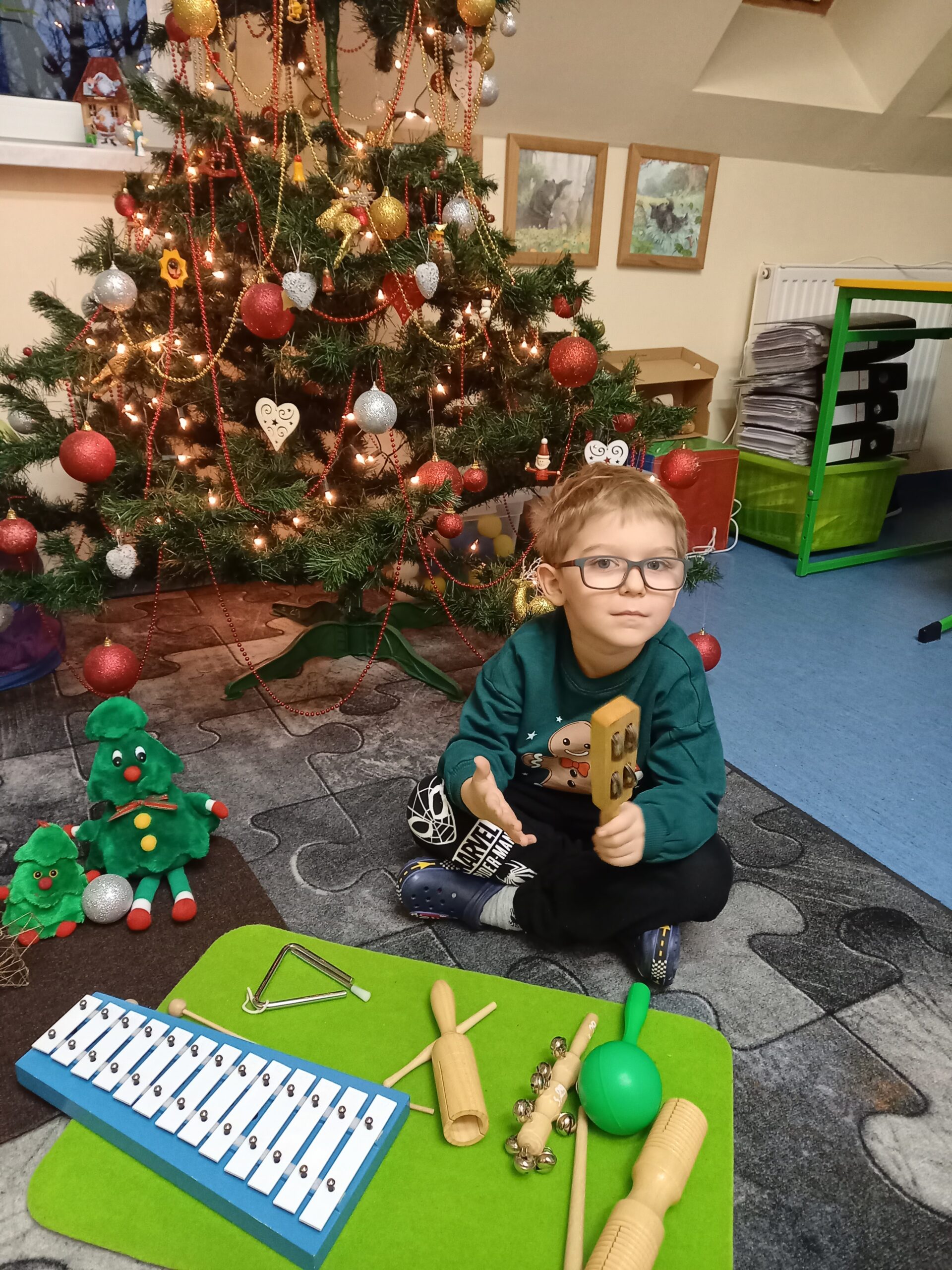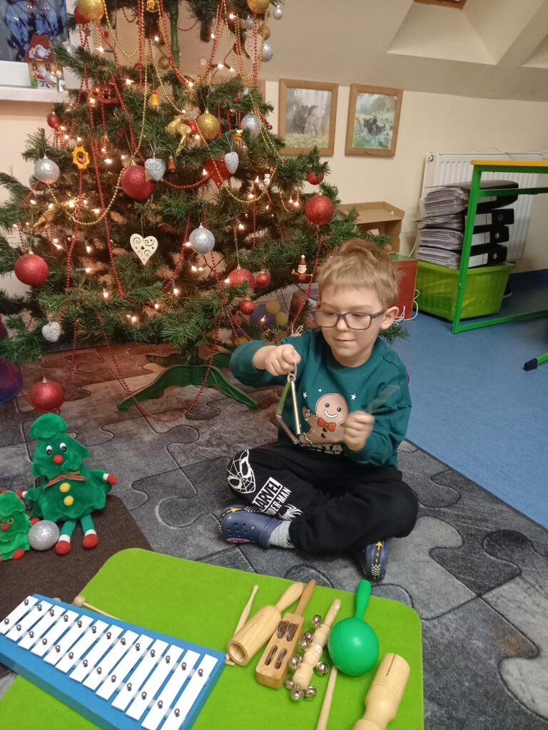 Po wysłuchaniu instrumentów dzieci miały za zadanie odtworzenie zaprezentowanego rytmu w odpowiedniej kolejności.