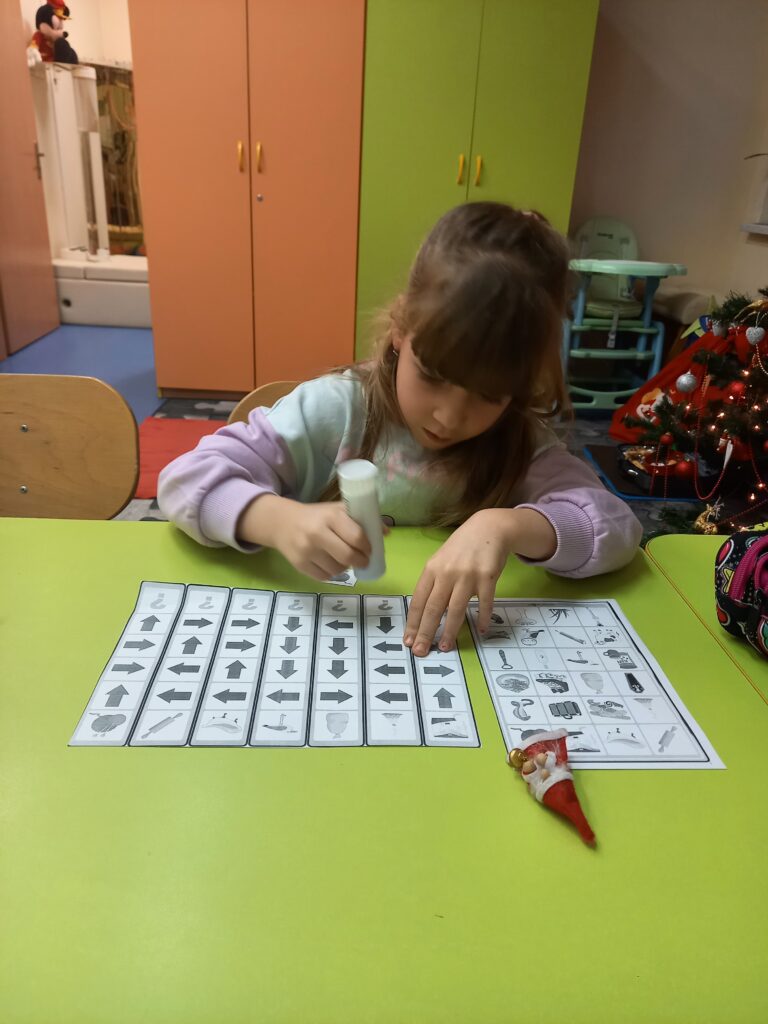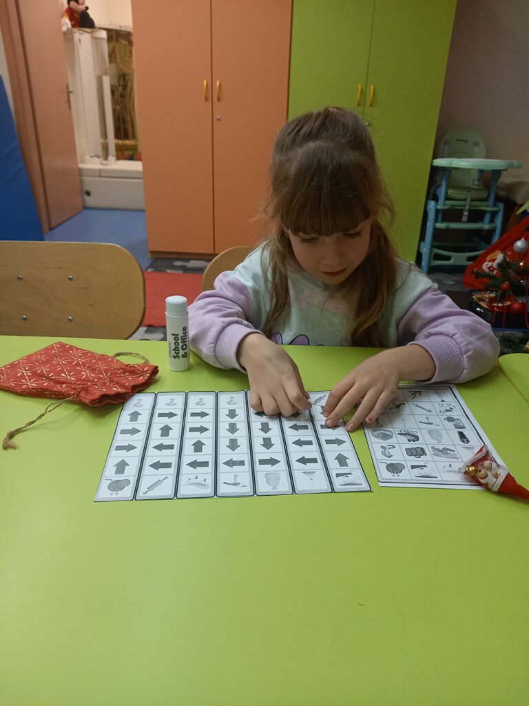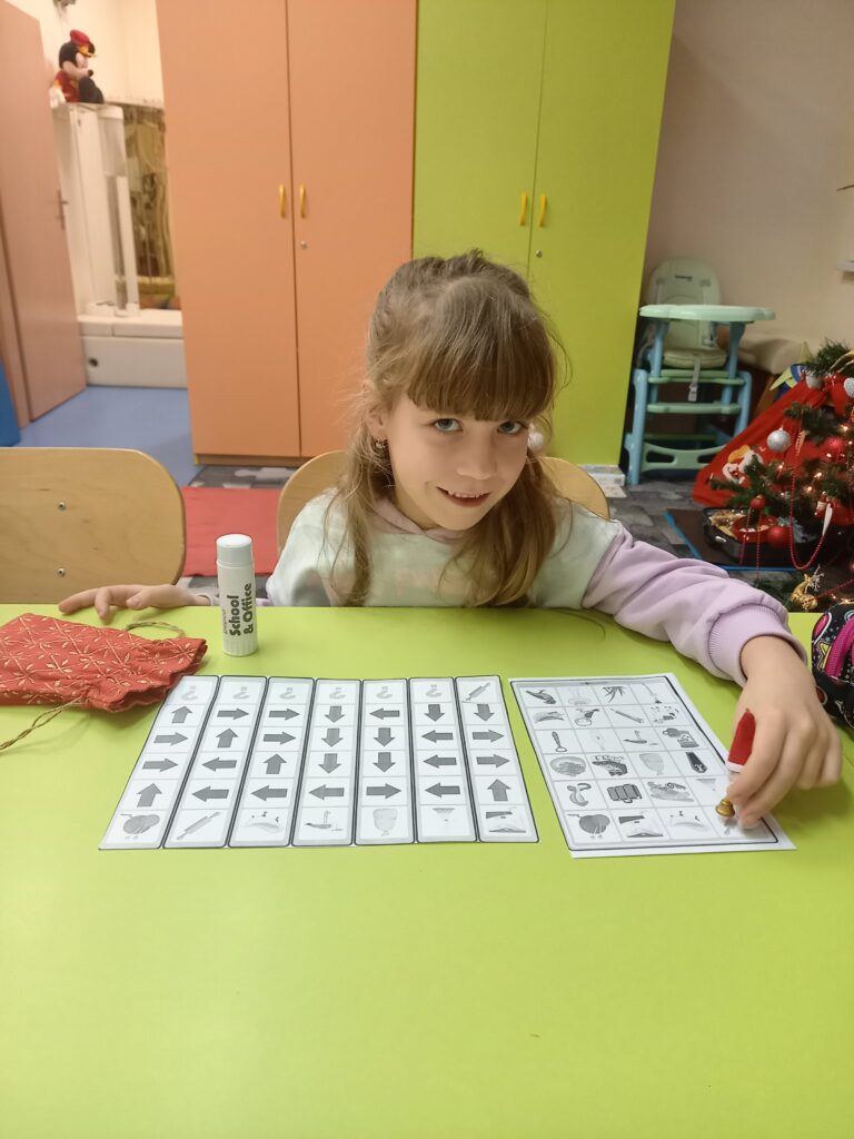 Później dzieliły nazwę obrazka na sylaby oraz określały jaką głoskę słyszą w nagłosie, a jaką w wygłosie wyrazu.