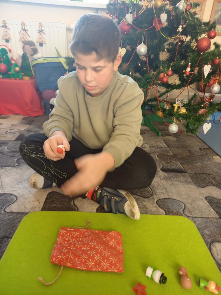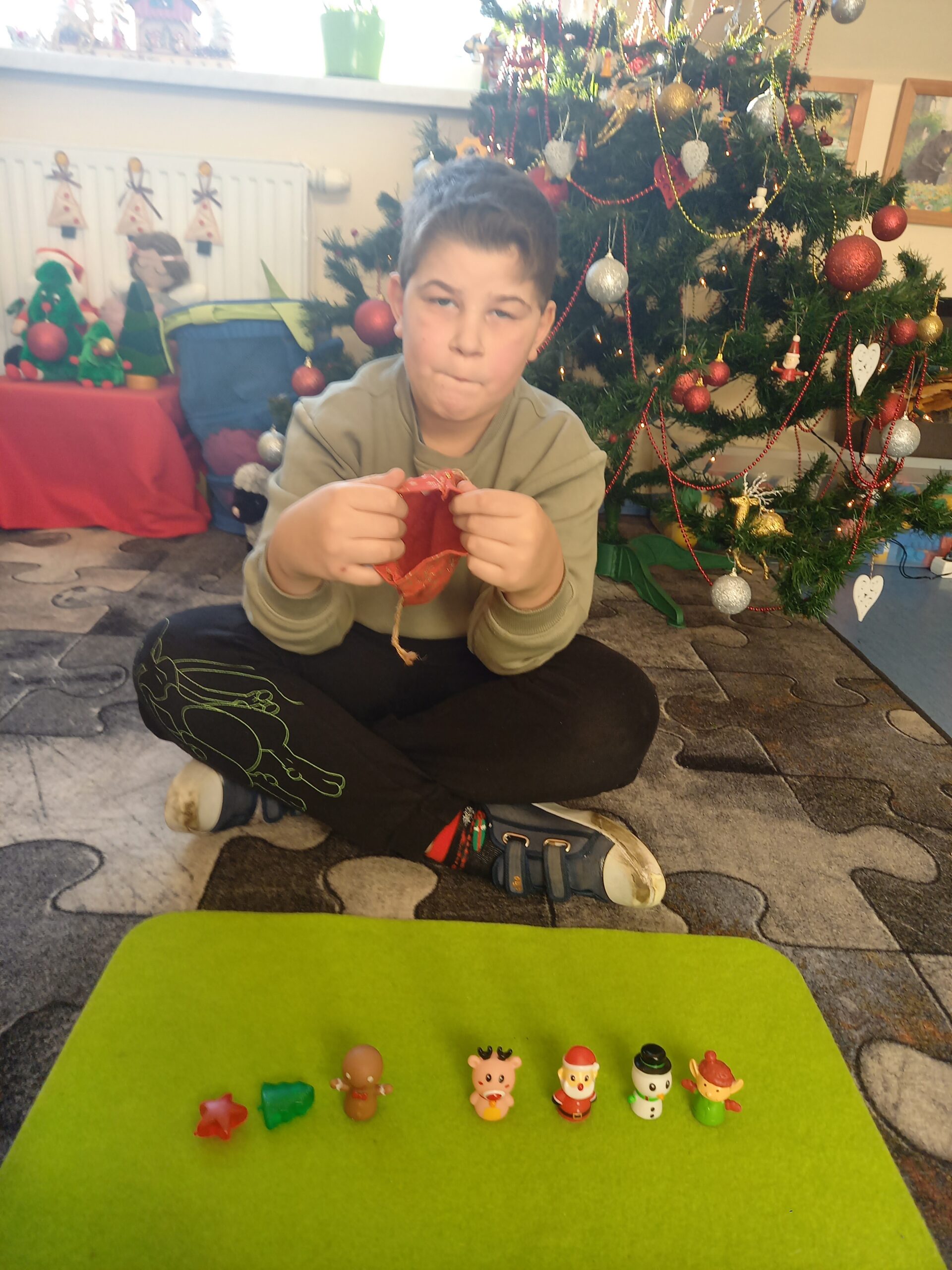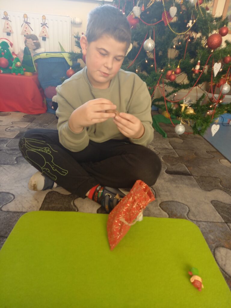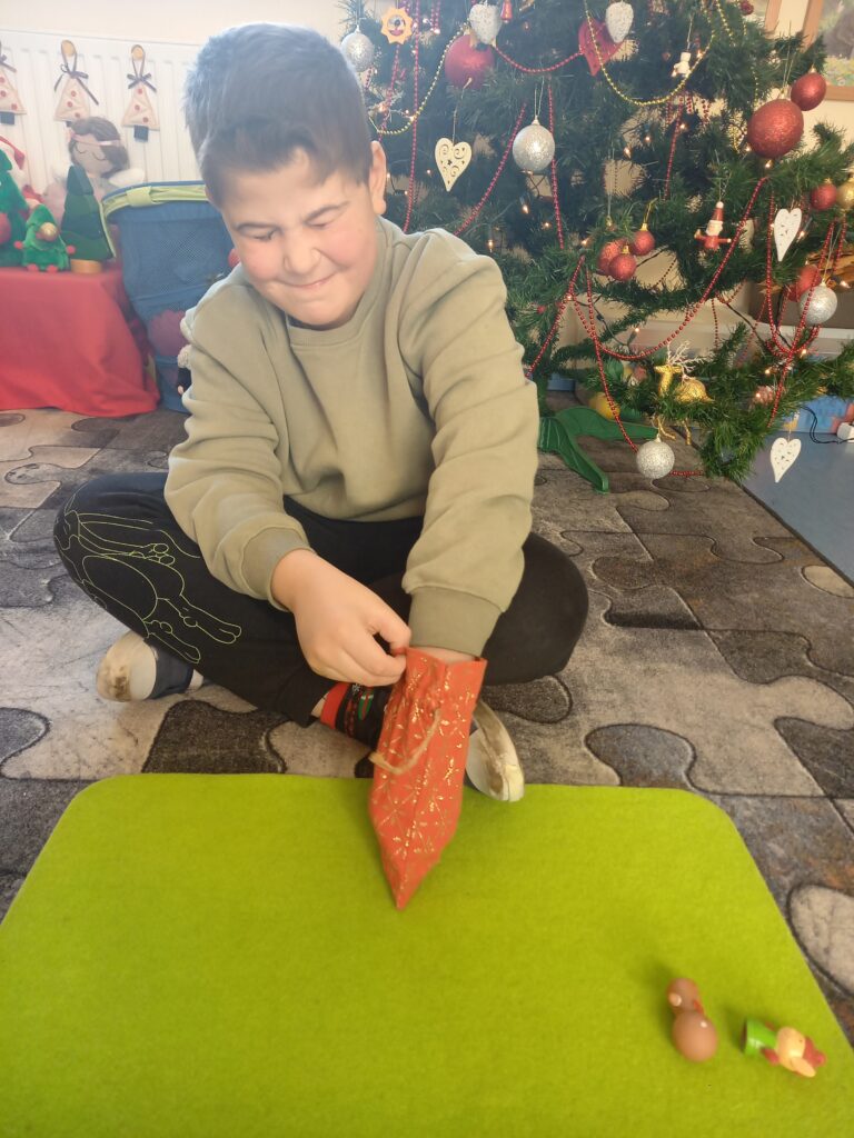 W magicznym pudełku Mikołaj zostawił worek, w którym umieścił pacynki.