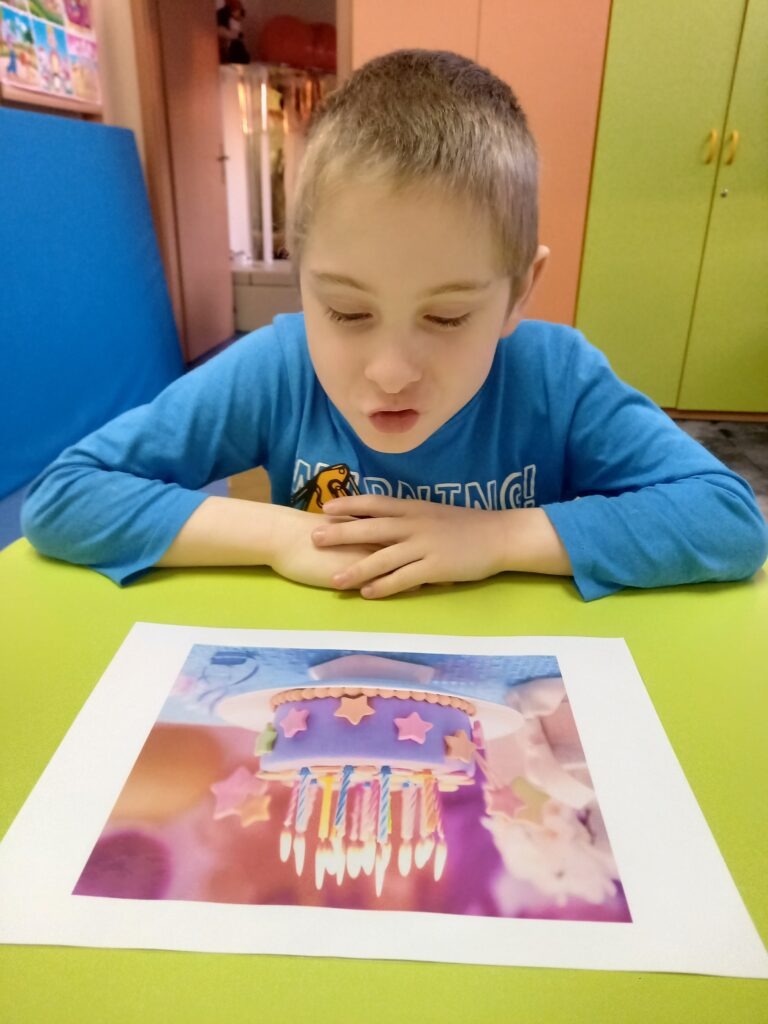 Celem zadania było ćwiczenie oddechowe i fonacyjne, różnicowanie głosek dźwięcznych i bezdźwięcznych.