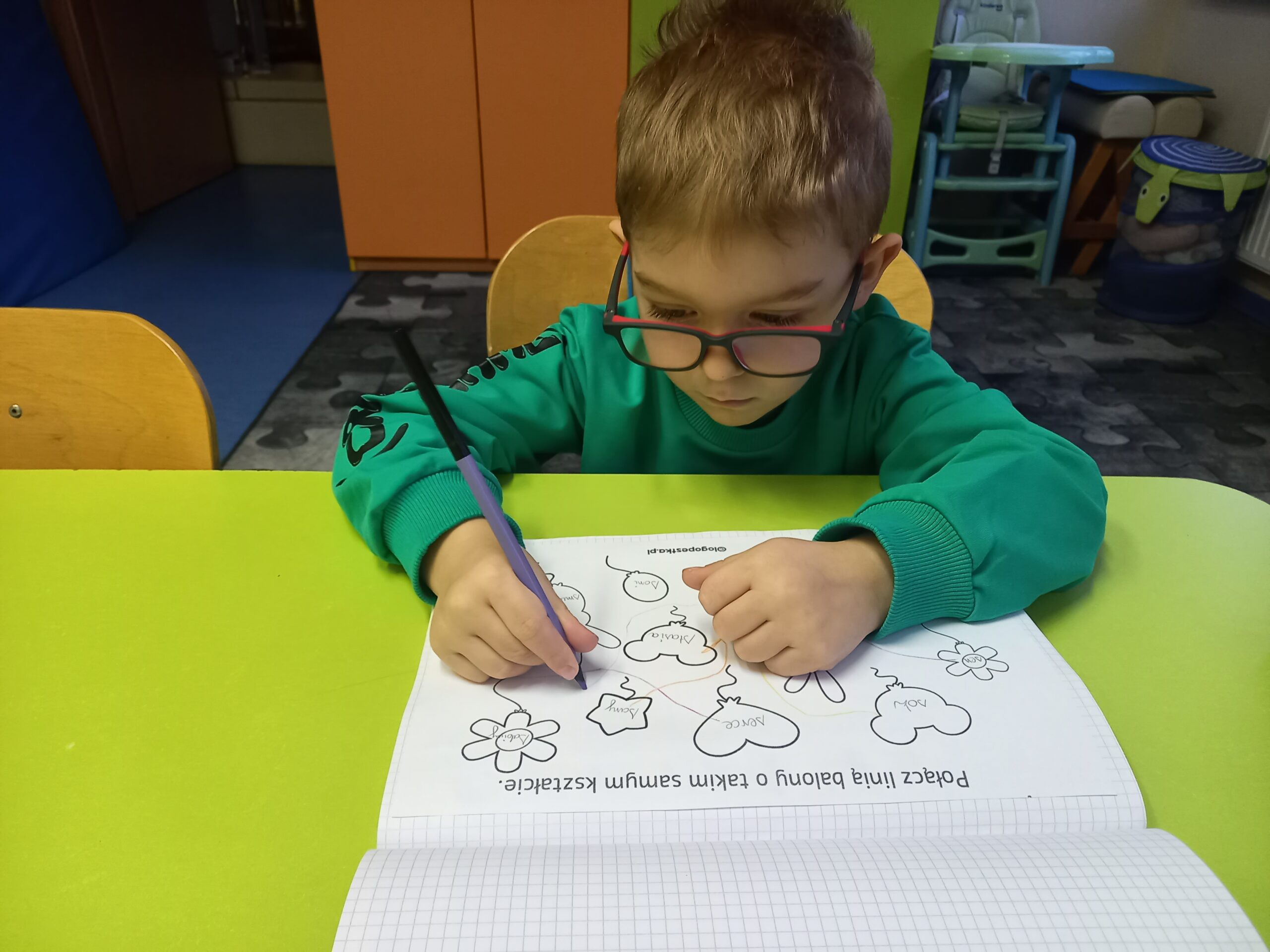 Zadanie polegało na automatyzacji trudnych głosek, a także miało na celu rozwijanie mowy opowieściowej.