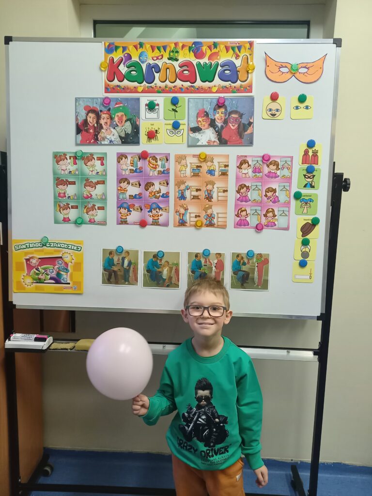 Omawiając tematy dotyczące karnawału uczniowie poznawali i utrwalali literki „B” i „C”.
