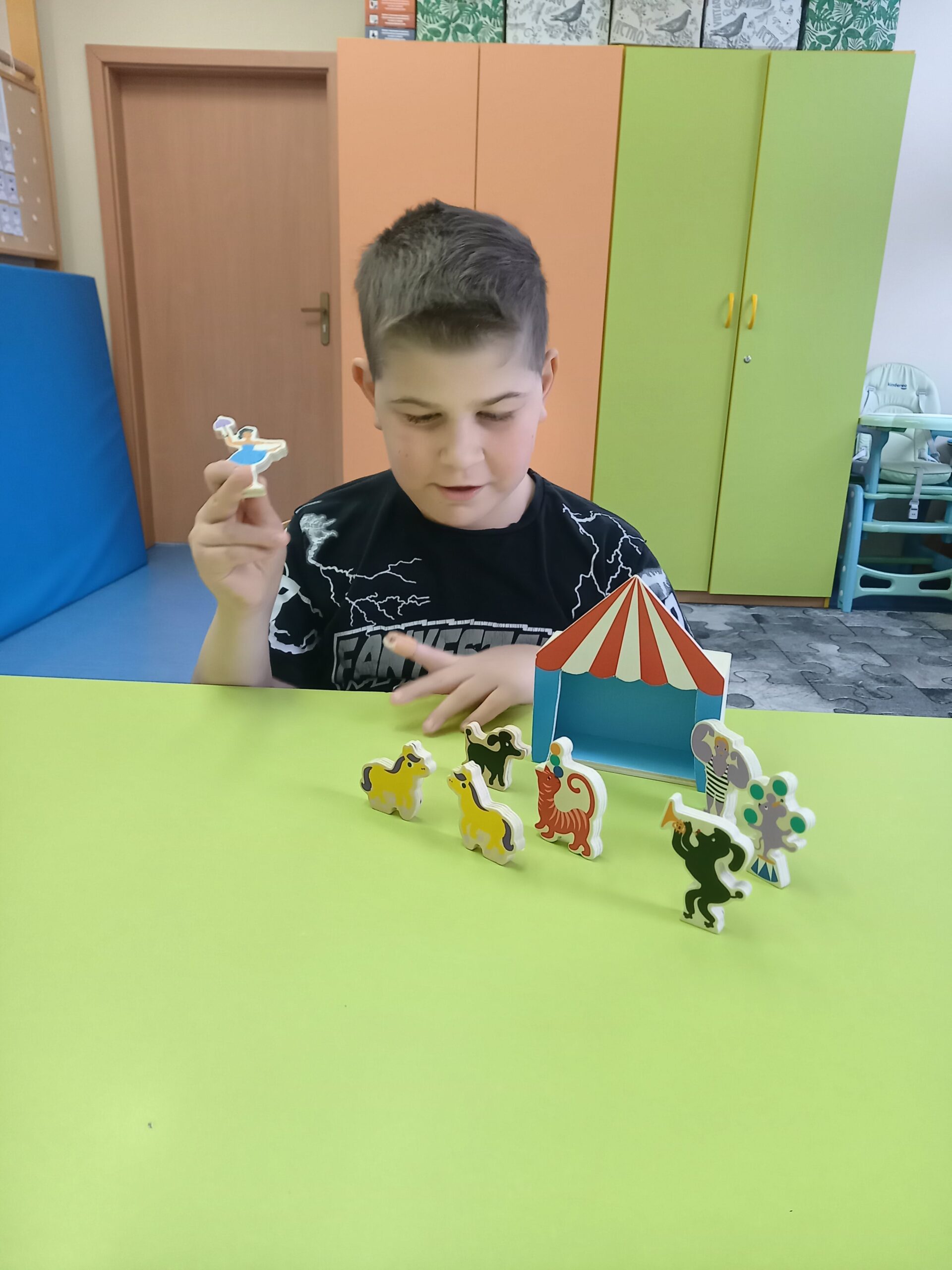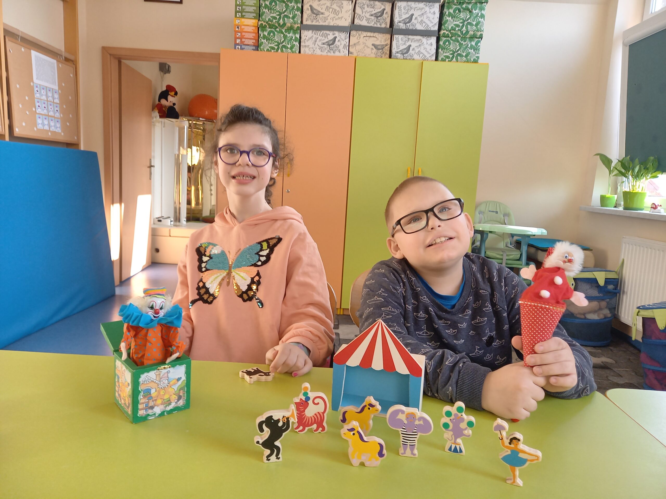 Dzieci odtwarzały scenki sytuacyjne, stosowały naprzemienność w komunikacji ze wskazywaniem osób, rozwijały zasób leksykalny ucząc się opowiadania.