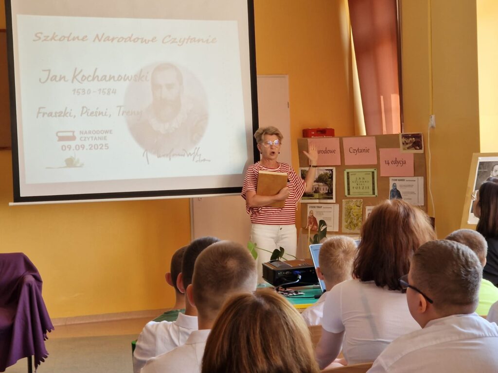 Narodowe Czytanie w 2025 roku poświęcone jest poezji Jana Kochanowskiego, a dokładniej jego pieśniom, fraszkom i trenom. Tegoroczna, czternasta edycja akcji odbyła się w sobotę, 6 września 2025 roku. Celem przedsięwzięcia, inicjowanego przez Prezydenta RP, jest popularyzacja polskiej literatury, promowanie czytelnictwa i wzmacnianie poczucia wspólnej tożsamości.